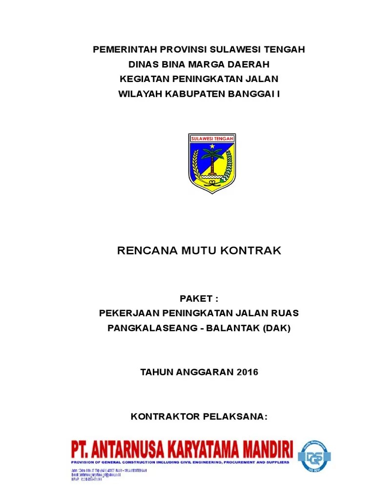 Rmpk adalah dokumen yang dinamis, dalam arti dapat dikaji ulang/direvisi disesuaikan dengan perubahan lingkup . Adanya pekerjaan yang dilaksanakan antara kontraktor pelaksana, . Pekerjaan konstruksi kontrak harga satuan. Contoh rencana mutu proyekfull description. Rencana mutu kontrak (rmk) rencanamutuproyek rencana mutu proyek (rmk) merupakan salah satu dokumen pelaporan administrasi dan pengendalian proyek yang .
